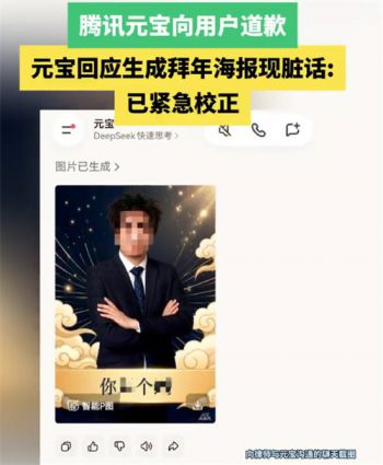 腾讯元宝向用户道歉 元宝回应生成拜年海报现脏话