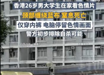 香港26岁男大学生观看色情内容窒息死亡 警方初步排除自杀可能